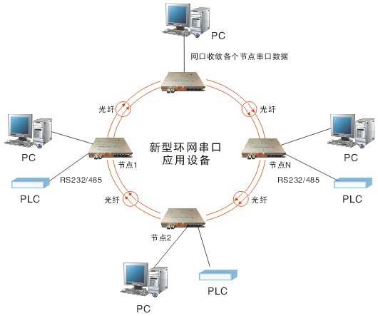 傳統(tǒng)的光端機(jī)都是點(diǎn)對(duì)點(diǎn)應(yīng)用的,光端機(jī)分別安裝在光纖的兩端,如最常用的光纖以太網(wǎng)收發(fā)器,利用光纖連接兩端的計(jì)算機(jī)網(wǎng)絡(luò);而在諸如電力,水利,骨干傳輸 網(wǎng)等場(chǎng)合,點(diǎn)對(duì)點(diǎn)的組網(wǎng)方式顯然受到很大的限制,這時(shí)候要求光纜及設(shè)備組成環(huán)狀網(wǎng),光設(shè)備就需要環(huán)網(wǎng)光端機(jī):中心是一個(gè)匯聚型設(shè)備,對(duì)應(yīng)遠(yuǎn)端的各個(gè)節(jié)點(diǎn)傳 送的通信信號(hào)(電話/視頻/以太網(wǎng)/串口等),最大限度地節(jié)省了光纜投資并提高纖芯利用率,在實(shí)際應(yīng)用中是合理和必須的。環(huán)網(wǎng)式光端機(jī)要求設(shè)備最少帶2個(gè)或以上的光口,應(yīng)該可實(shí)現(xiàn)自愈保護(hù)功能,當(dāng)鏈路上任一節(jié)點(diǎn)出現(xiàn)故障,可自動(dòng)選擇其他路由與中心通信,保障無故障節(jié)點(diǎn)的正常通信。