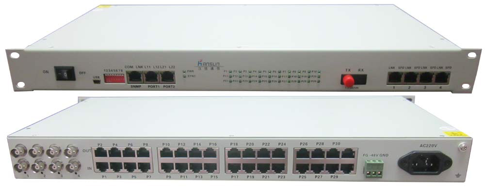 產(chǎn)品簡介 HS-OPTEL系列 30路電話光端機是在超大規(guī)模集成電路的基礎(chǔ)上開發(fā)的點對點光傳輸設(shè)備,它是以簡潔的形式實現(xiàn)了最多4條E1電路和1條100M線速以太網(wǎng)數(shù)據(jù)通道,加上30路電話 (FXO、FXS),加上1~2路RS232通道的語音光傳輸設(shè)備。具告警監(jiān)控功能完善,集成度高,功耗低,性能穩(wěn)定,使用方便。