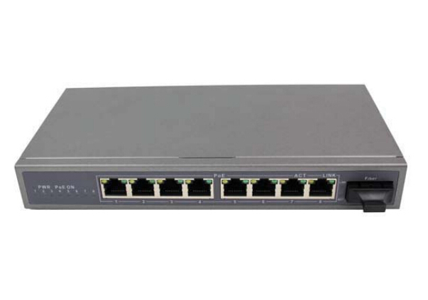 HS1308-PoE-SSC通過5類網(wǎng)線為無線接入點AP和的網(wǎng)絡攝像機供電,可提供8個標準PoE供電端口,1個百兆SC級聯(lián)光口,8個自適用10/100Mbps 端口。