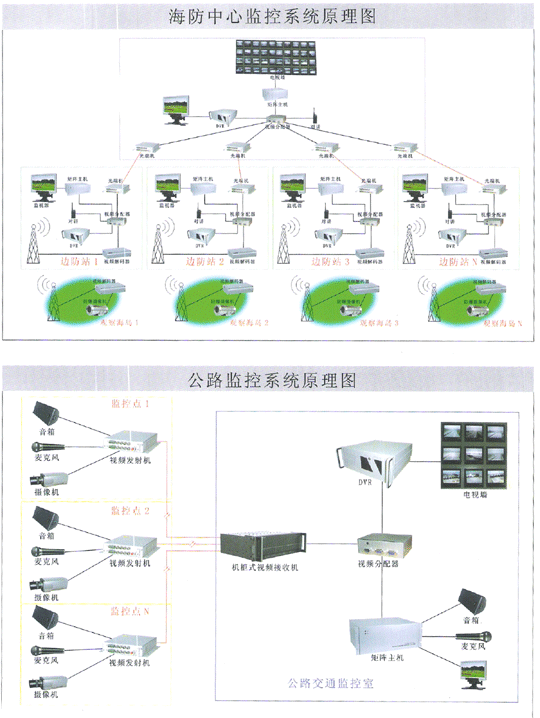 海防中心及公路監(jiān)控系統(tǒng)原理圖--視頻光端機應用