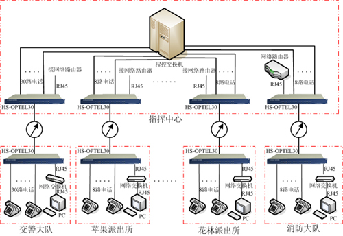 該方案采用我公司開發(fā)生產的電話光端機,實現了電話網與以太網的完美結合!